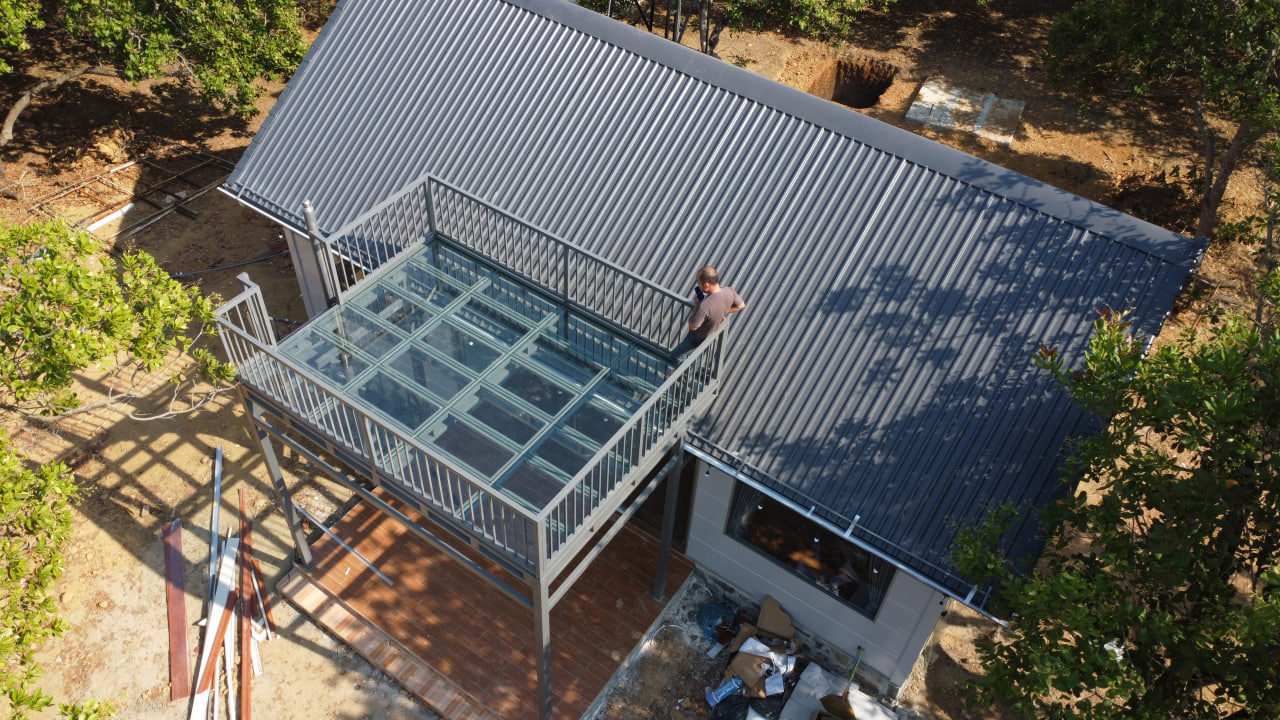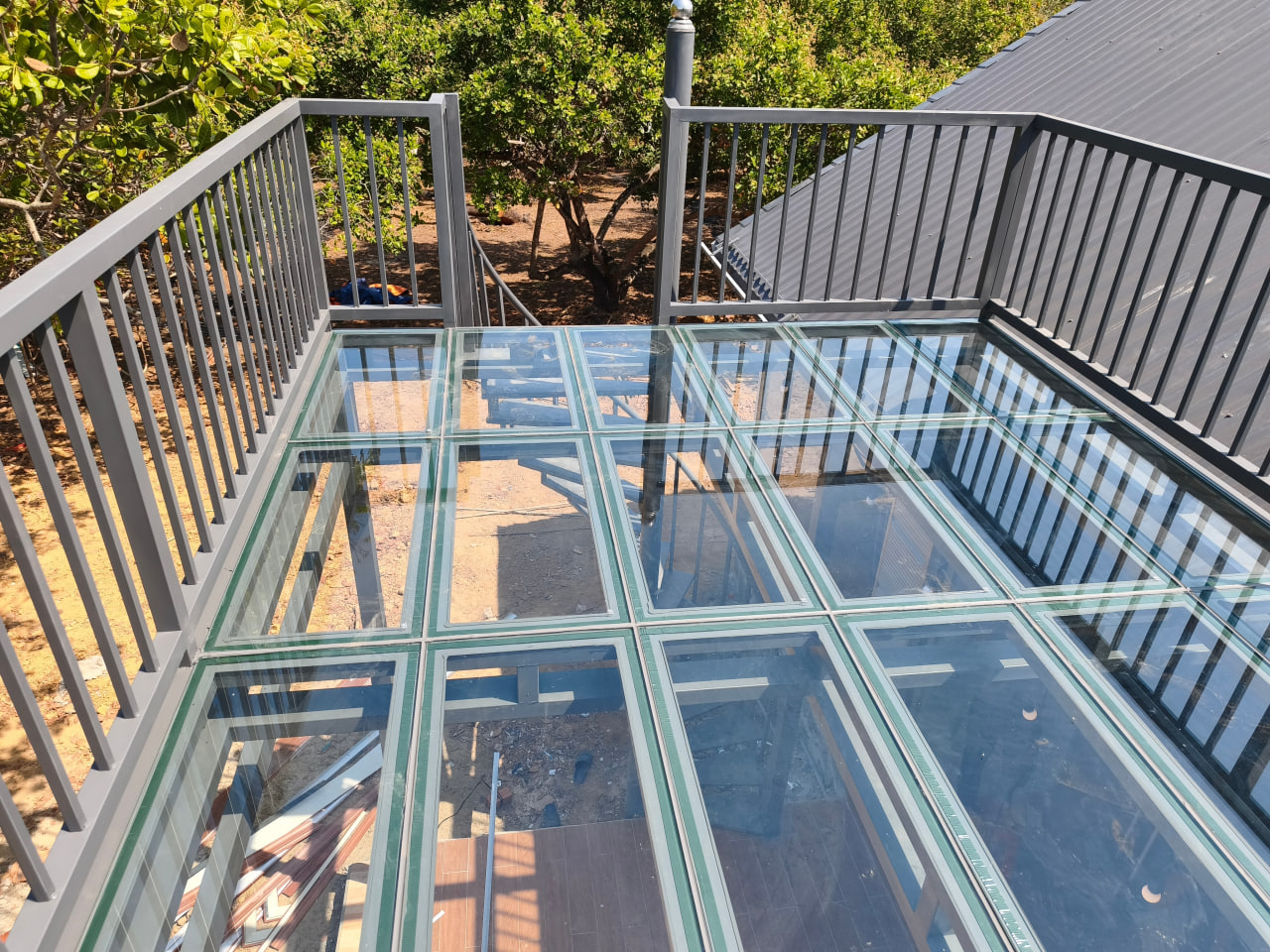 12m2 sân thượng lót bằng sàn kính cường lực
